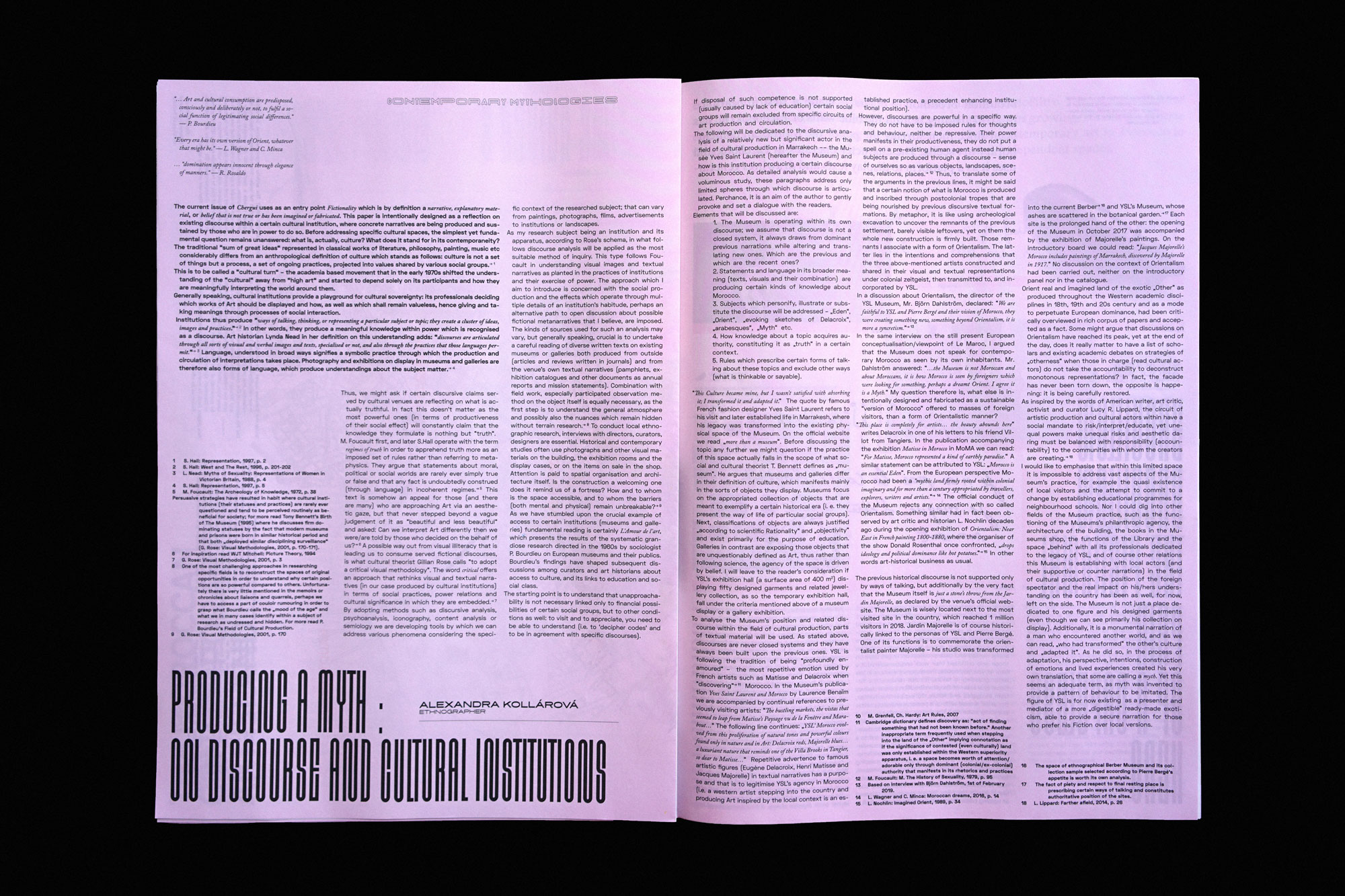 CHERGUI#001 ︎ EDITEUR/PUBLISHER︎LE 18, Marrakech. DESIGN & ART DIRECTION︎Untitled (Soukaina Aboulaoula, Yvon Langué). CONTRIBUTEURS/CONTRIBUTORS︎Soukaina Aboulaoula, Mo Baala, Meriem Benmhamed, FMB7 (Youness Atbane, M'Barek Bouhchichi, Simohamed Fettaka), Antonin Gerson, Flore Grassiot, Laila Hida, Marine Kaiser, Alexandra Kollárová, Yvon Langué, Hicham Lasri, Francesca Masoero, Ayoub Mouzaïne, Juan Palao, Carlos Perez Marin, Abdelaziz Zerrou. RELECTURES/proofreading︎Soukaina Aboulaoula, Laila Hida, Francesca Masoero. POLICES EN USAGES/FONTS IN USE︎Disclaimer, Space Grotesk, Ace Lift, Adobe Caslon. IMPRESSION/PRINTING ︎CHERGUI #001, 1000 ex. PAR/BY︎LITOGRAF, Tanger, Maroc. Dépôt Légal︎2019PE0008/ISSN︎2665-766X. Feb. 2019